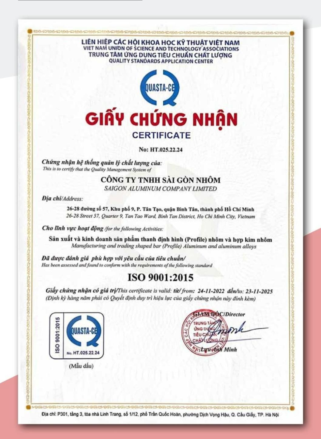 Chứng Nhận Tiêu Chuẩn Chất Lượng